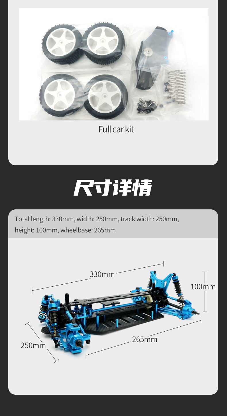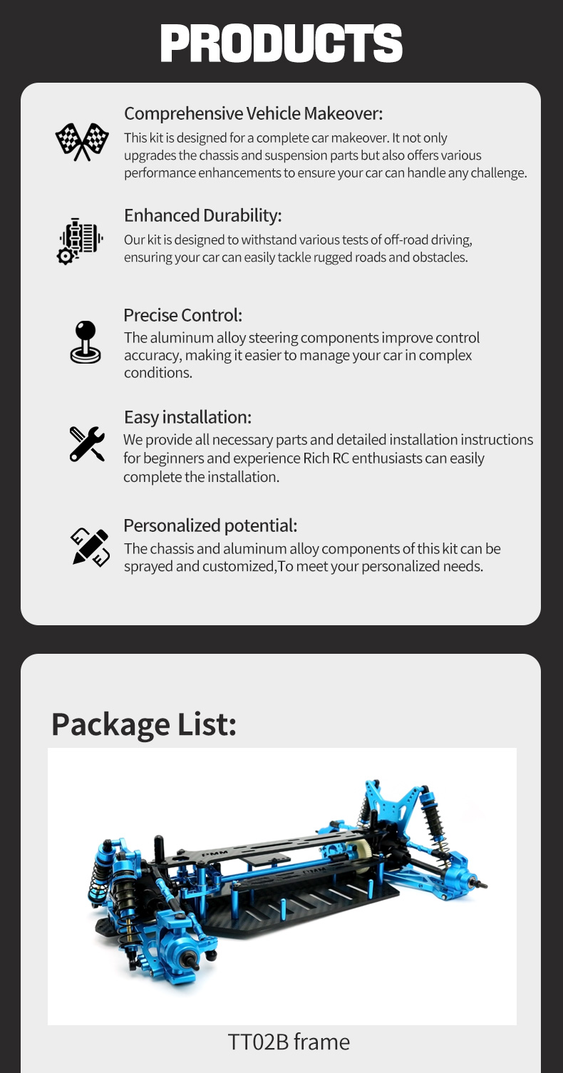 1/10 TT02B拉力KIT车架 碳钎维底盘铝合金部件车架 DIY升级款